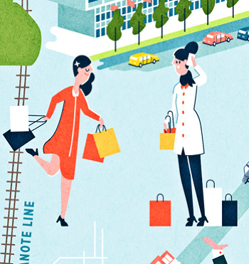 Set of city illustrations for Veikkaus, the Finnish national betting agency.