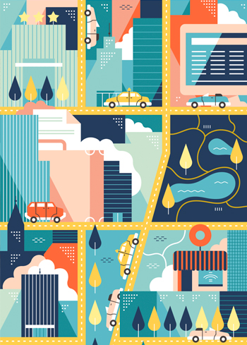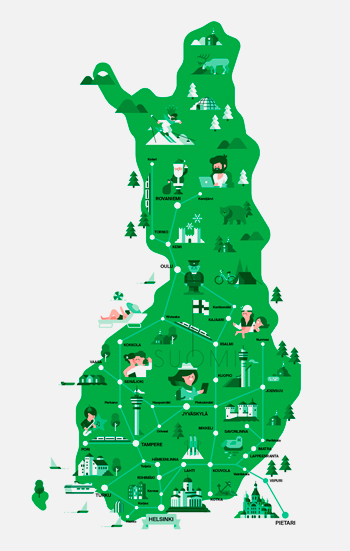 Set of city illustrations for Veikkaus, the Finnish national betting agency.