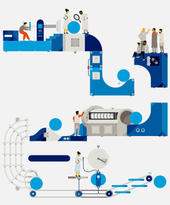 Communication illustration executed in form of an imaginary machine like a marble run.